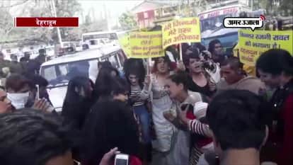 देहरादून में किन्नर रजनी के खिलाफ सड़क पर किन्नरों का प्रदर्शन