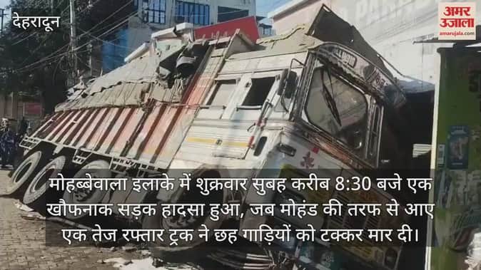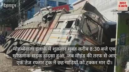 मोहब्बेवाला इलाके में शुक्रवार सुबह करीब 8:30 बजे एक खौफनाक सड़क हादसा हुआ, जब मोहंड की तरफ से आए एक तेज रफ्तार ट्रक ने छह गाड़ियों को टक्कर मार दी। और खुद रोड किनारे नाले में एक टायर से जा धंसा। गनीमत रही कि हादसे में कोई गंभीर रूप से घायल नहीं हुआ। इस दौरान यहां कई दुकानें भी क्षतिग्रस्त हो गई। सीमेंट से भरा ट्रक एक्सप्रेस वे से होते हुए तेज रफ्तार में देहरादून में प्रवेश कर रहा था, तभी अनियंत्रित होकर तीन-चार कार और विक्रम टेम्पो समेत कुल छह वाहनों को टक्कर मार दी, जिससे इलाके में हड़कंप मच गया। ट्रक के नाले में एक तरफ गिरने के कारण डीजल बहना शुरू हो गया था, जिससे बड़ी आग लगने की आशंका थी। मौके पर पहुंचे पुलिस और यातायात कर्मियों व अधिकारियों ने घेराबंदी करके ट्रैफिक और भीड़ को दूर करवाया, फायर ब्रिगेड की गाड़ी मौके पर बुलाई गई, तब जाकर खतरा टला। करीब ढाई घंटे में रोड को यातायात के लिए क्लियर कर दिया गया।