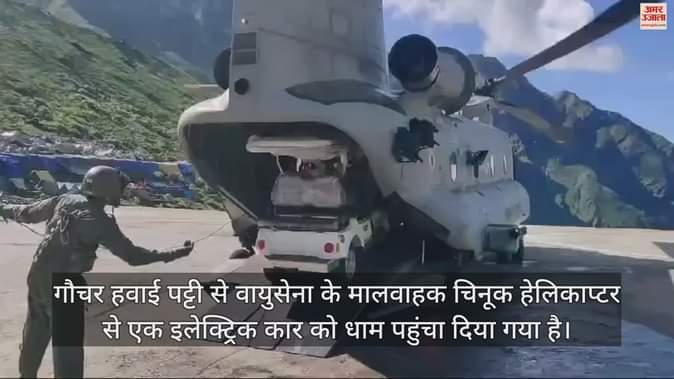गौचर हवाई पट्टी से वायुसेना के मालवाहक चिनूक हेलिकाप्टर से एक इलेक्ट्रिक कार को धाम पहुंचा दिया गया है। इस इको फ्रेंडली कार से बुजुर्ग और जरूरतमंद तीर्थयात्री हेलिपैड से मंदिर तक आसानी से पहुंच सकेंगे। पिछले दिनों केदारनाथ धाम में दो थार एसयूवी पहुंचाई गईं थीं।