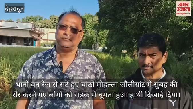 थानो वन रेंज से सटे हुए चांठों मोहल्ला जौलीग्रांट में सुबह की सैर करने गए लोगों को सड़क में घूमता हुआ हाथी दिखाई दिया।