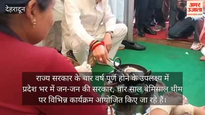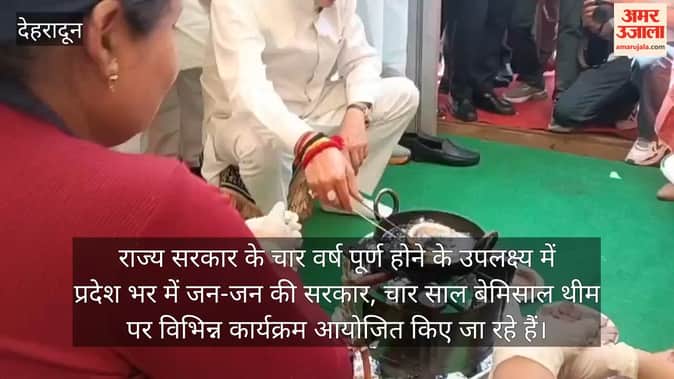 राज्य सरकार के चार वर्ष पूर्ण होने के उपलक्ष्य में प्रदेश भर में जन-जन की सरकार, चार साल बेमिसाल थीम पर विभिन्न कार्यक्रम आयोजित किए जा रहे हैं। 23 से 25 मार्च तक आयोजित होने वाले कार्यक्रमों का शुभारंभ आज सोमवार को परेड ग्राउंड से मुख्यमंत्री पुष्कर सिंह धामी किया। इस दौरान परेड ग्राउंड में लगे स्टालों का उद्घाटन करने पहुंचे सीएम ने यहां पर सेल रोटी बनाई। कार्यक्रम का प्रदेश के सभी जनपदों में प्रसारण भी किया जाएगा। भाजपा सरकार के चार वर्ष पूर्ण होने के अवसर पर परेड ग्राउंड में आयोजित चार साल बेमिसाल कार्यक्रम का दीप प्रज्वलित कर सीएम धामी शुभारंभ किया। इस दौरान कैबिनेट मंत्री गणेश जोशी, सुबोध उनियाल, राज्यसभा सांसद नरेश बंसल, विधायक खजानदास, सविता कपूर, मेयर सौरभ बहुगुणा मौजूद रहे।
