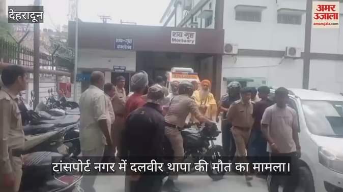 टांसपोर्ट नगर में दलवीर थापा की मौत का मामला। दून अस्पताल शव गृह के बाहर मृतक के पोस्टमार्टम से पहले हंगामा। आरोपी के साथ के अन्य दो लोगों को पकड़ने की मांग। हिन्दू रक्षक दल के सदस्य भी पहुंचे।