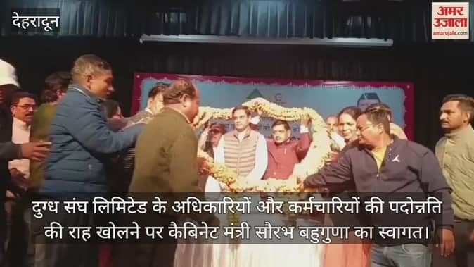 दुग्ध संघ लिमिटेड के अधिकारियों और कर्मचारियों की पदोन्नति की राह खोलने पर कैबिनेट मंत्री सौरभ बहुगुणा का स्वागत। सर्वे चौक इर्द सभागार में हुआ कार्यक्रम। दुग्ध संघ के कर्मचारियों और अधिकारियों ने माला पहनाकर किया स्वागत।
