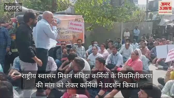 VIDEO : राष्ट्रीय स्वास्थ्य मिशन संविदा कर्मियों के नियमितीकरण की मांग को लेकर प्रदर्शन