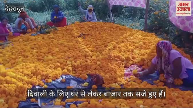 दिवाली के लिए घर से लेकर बाजार तक सजे हुए हैं। लोग साज-सज्जा का सामान खरीद रहे हैं। इस बीच फूलों की खासतौर पर डिमांड रहती है। देहरादून में सरस्वती विहार स्थित में खेत भारी संख्या में गेंदे के फूल लगे हुए हैं, जिनसे फूलों से माला तैयार की जा रही है।