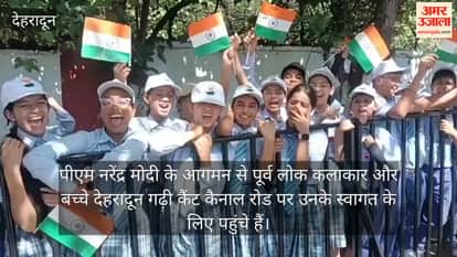 पीएम मोदी स्वागत के लिए पहुंचे लोक कलाकार और बच्चे