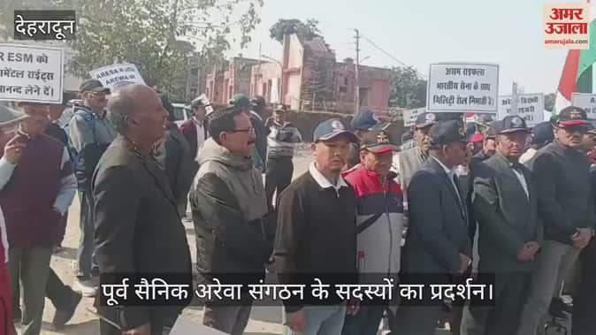 पूर्व सैनिक अरेवा संगठन के सदस्यों का प्रदर्शन। अपनी विभिन्न मांगों को लेकर गांधी रोड स्थित पुराने मसूरी बस अड्डे से जिलाधिकारी कार्यालय तक निकाली रैली ।