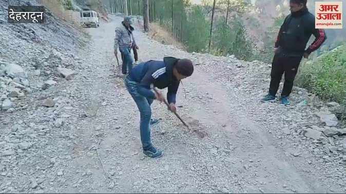 VIDEO : गड्ढों को ग्रामीणों ने श्रमदान से भरा, ठेकेदार पर लगाए आरोप