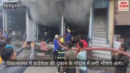 VIDEO : विकासनगर के मुख्य बाजार में हार्डवेयर की दुकान के गोदाम में लगी भीषण आग
