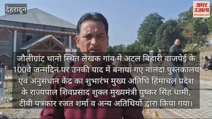 जौलीग्रांट थानो स्थित लेखक गांव में अटल बिहारी वाजपेई के 100वे जन्मदिन पर उनकी याद में बनाया गए नालंदा पुस्तकालय एवं अनुसंधान केंद्र का शुभारंभ मुख्य अतिथि हिमाचल प्रदेश के राज्यपाल शिवप्रसाद शुक्ल मुख्यमंत्री पुष्कर सिंह धामी, टीवी पत्रकार रजत शर्मा व अन्य अतिथियों द्वारा किया गया। मुख्य अतिथि, अति विशिष्ट अतिथियों व अन्य लोगों के द्वारा नालंदा पुस्तकालय के अलावा काफी लोग कार्यक्रम में पहुँचे हैं। कार्यक्रम में भारत रत्न अटल बिहारी वाजपेई की प्रतिमा का अनावरण भी किया गया। कार्यक्रम में काफी संख्या में बच्चों के अलावा लोग पहुंचे हुए हैं। एक नए भवन में इस पुस्तकालय को शुरू किया गया है। ऐसा दावा किया जा रहा है कि इस पुस्तकालय में ऑक्सफोर्ड यूनिवर्सिटी और देश दुनिया की तमाम पुस्तकालय से करीब डेढ़ लाख पुस्तकों को रखा गया है।