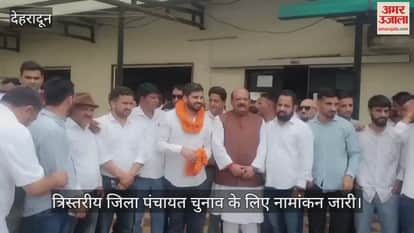 त्रिस्तरीय जिला पंचायत चुनाव के लिए नामांकन जारी। चकराता बिनाड़ बास्तील से नामांकन पत्र दाखिल कर निकले प्रत्याशी। उत्तराखंड में हरिद्वार को छोड़कर 12 जिलों में त्रिस्तरीय पंचायत चुनाव की नामांकन प्रक्रिया जारी है। राज्य निर्वाचन आयोग पंचायतों के 66,418 पदों के लिए दो चरणों में चुनाव कराने जा रहा है। दोनों चरणों के लिए नामांकन दो से पांच जुलाई को सुबह आठ से शाम चार बजे के बीच होगा।