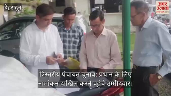 त्रिस्तरीय पंचायत चुनाव: प्रधान के लिए नामांकन दाखिल करने पहुंचे उम्मीदवार। रायपुर विकासखंड में नामांकन के लिए पहुंचे प्रत्याशी। उत्तराखंड में हरिद्वार को छोड़कर 12 जिलों में त्रिस्तरीय पंचायत चुनाव की नामांकन प्रक्रिया चल रही है। राज्य निर्वाचन आयोग पंचायतों के 66,418 पदों के लिए दो चरणों में चुनाव कराने जा रहा है। दोनों चरणों के लिए नामांकन दो से पांच जुलाई को सुबह आठ से शाम चार बजे के बीच होगा।