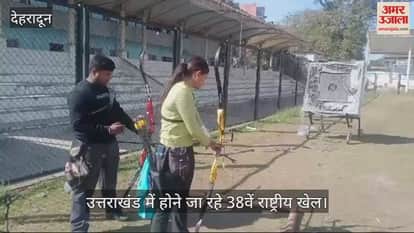 VIDEO : नेशनल गेम्स की तैयारियां...पवेलियन मैदान में तीरंदाजी का अभ्यास कर रहे खिलाड़ी