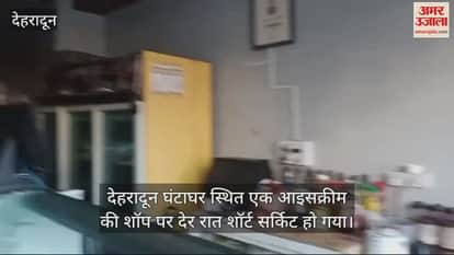 VIDEO : घंटाघटर के पास आइसक्रीम की शॉप पर देर रात शॉर्ट सर्किट