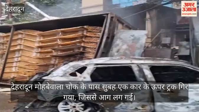 देहरादून मोहबेवाला चोक के पास सुबह एक कार के ऊपर ट्रक गिर गया, जिससे आग लग गई। दमकल की टीम ने मौके पर पहुंचकर आग को बुझाया। पटेल नगर थाना क्षेत्र के पास दुर्घटना हुई। दोनों गाड़ियों में सिर्फ ड्राइवर सवार थे, दोनों सुरक्षित हैं।