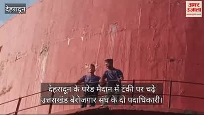 VIDEO : परेड मैदान में टंकी पर चढ़े उत्तराखंड बेरोजगार संघ के दो पदाधिकारी, मचा हड़कंप