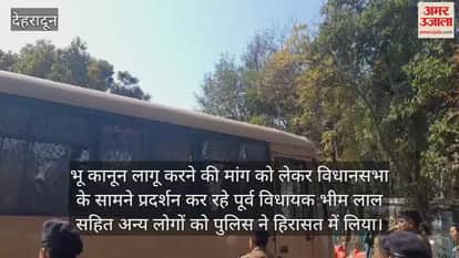 भू कानून लागू करने की मांग को लेकर विधानसभा के सामने प्रदर्शन कर रहे पूर्व विधायक भीम लाल सहित अन्य लोगों को पुलिस ने हिरासत में लिया। पुलिस सभी को वाहन से दूसरे स्थान पर ले गई है।
