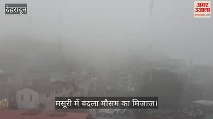 मसूरी में दोपहर बाद बदला मौसम, शुरू हुई झमाझम बारिश, छाया घना कोहरा