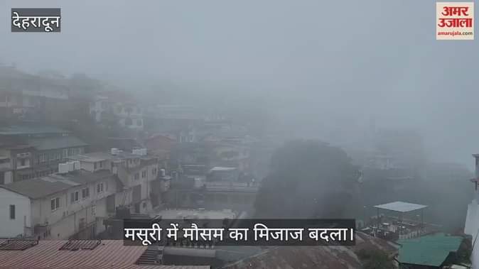 मसूरी में मौसम का मिजाज बदला। शहर में घना कोहरा छाया हुआ है। ठंडी हवा चलने से लोगों को सर्दी का अहसास भी होने लगा। कोहरे ने मसूरी को अपने आगोश में ले लिया है।