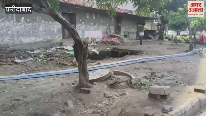 फरीदाबाद में नीलम चौक के पास बड़ा गड्ढा, कभी भी हो सकता है हादसा