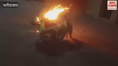 फरीदाबाद में चलती इलेक्ट्रिक स्कूटी में अचानक लगी आग