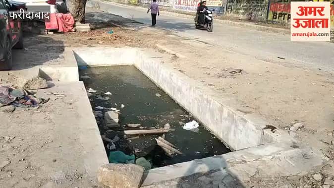फरीदाबाद में सेक्टर 21 की तरफ जाने वाले सर्विस रोड में खुला पड़ा पानी का हौद