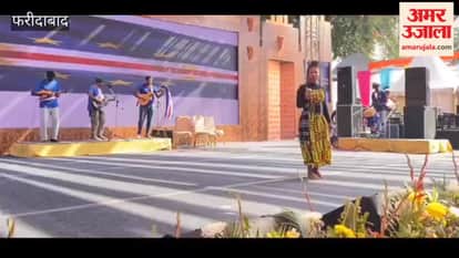 सूरजकुंड मेले की मुख्य चौपाल पर कैबो वर्दे देश के कलाकारों ने वन्दे मातरम गाना प्रस्तुत किया