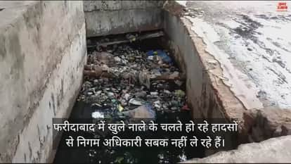 VIDEO : फरीदाबाद में चौक-चौराहों पर खुले नालों से हादसे का खतरा