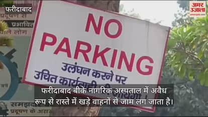 VIDEO : फरीदाबाद के बीके नागरिक अस्पताल में अवैध रूप से वाहनों के खड़े होने से लग रहा जाम