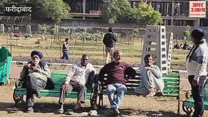 फरीदाबाद एनआईटी स्थित रोज गार्डन में कई दिनों बाद खिली धूप का आनंद लेते लोग