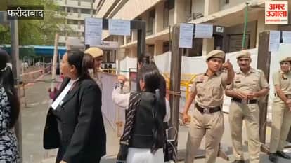 फरीदाबाद सेक्टर 12 न्यायालय परिसर में बार काउंसिल चुनाव को लेकर सुरक्षा व्यवस्था को लेकर तैनात पुलिस व मतदान करने के लिए इकट्ठा हुए अधिवक्ता।
