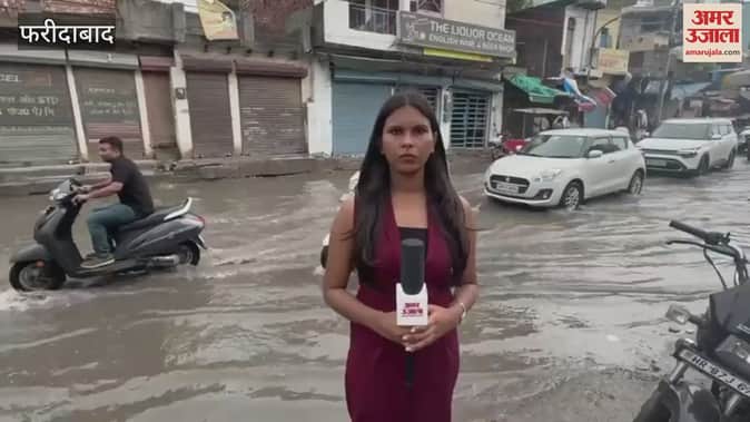 फरीदाबाद रेलवे स्टेशन के बाहर मुख्य सड़क पर पानी भर गया है, जिससे यात्रियों और राहगीरों को आने-जाने में भारी परेशानी का सामना करना पड़ रहा है। पानी भराव के कारण वाहन रेंगते नजर आ रहे हैं और यात्रियों को कीचड़ और गंदे पानी से होकर गुजरना पड़ रहा है।