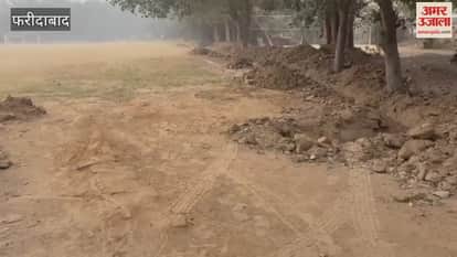 फरीदाबाद में फुटबॉल मैदान को और बेहतर बनाने का कार्य प्रगति पर है। चारों ओर नालियां बनाई जा रही हैं।