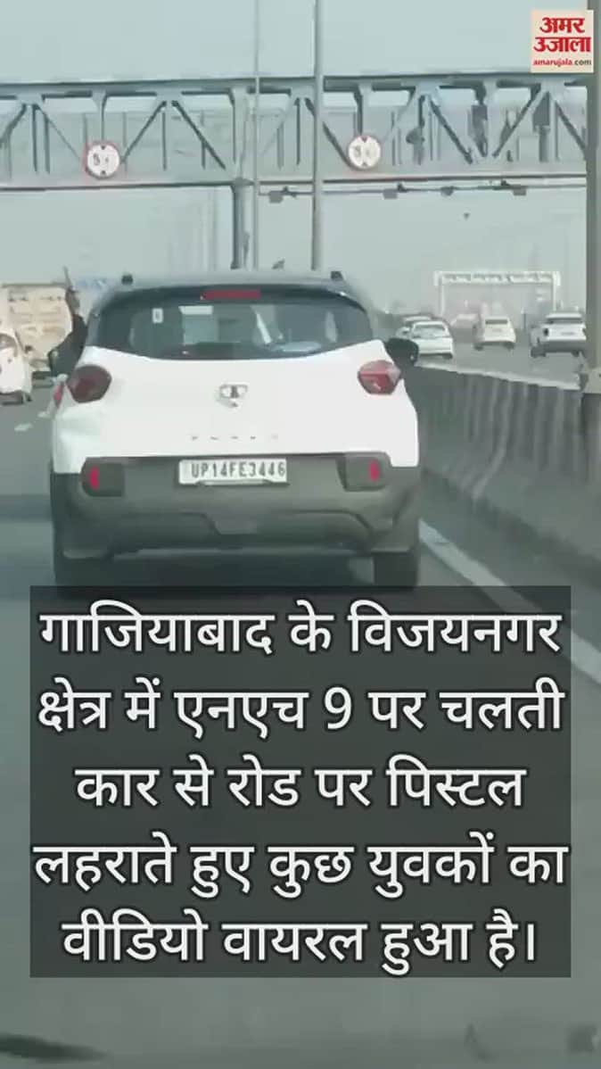 गाजियाबाद के विजयनगर क्षेत्र में एनएच 9 पर चलती कार से रोड पर पिस्टल लहराते हुए कुछ युवकों का वीडियो वायरल हुआ है। वीडियो में दिखाई दे रहा है कि कुछ युवक कार में सवार हैं। इनमें से एक युवक चलती कार की खिड़की से हाथ बाहर निकालकर पिस्टल लहराने लगता है। पीछे चल रहे एक कार सवार ने इनका वीडियो बना लिया। यह वीडियो सोशल मीडिया पर वायरल हो गया है।