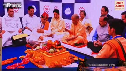 गाजियाबाद: ग्रीन डाटा सेंटर का भूमि पूजन करते मुख्यमंत्री योगी आदित्यनाथ, रखी आधारशिला