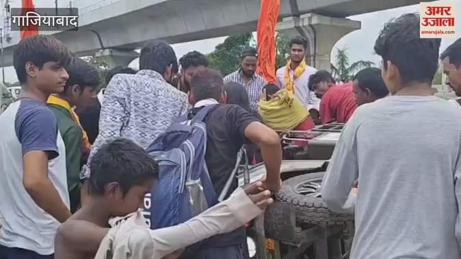गाजियाबाद में में दिल्ली-मेरठ मार्ग पर सवारियों से भरा ई-रिक्शा पलटा