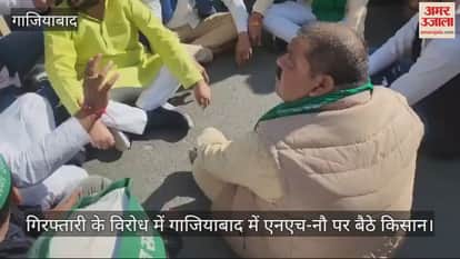 VIDEO : नोएडा के बाद गाजियाबाद के NH-9 को किसानों ने किया जाम, मांगों को लेकर सड़क पर बैठे