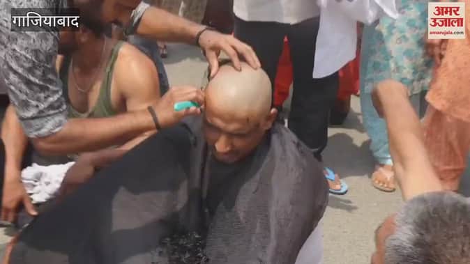 गाजियाबाद में बिल्डर के खिलाफ धरनारत किसानों का टूटा सब्र, मुंडन कराकर जताया विरोध
