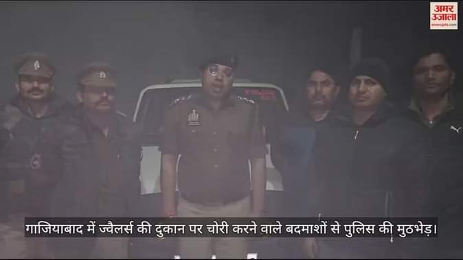 VIDEO : गाजियाबाद में ज्वैलर्स की दुकान पर चोरी करने वाले बदमाशों से पुलिस की मुठभेड़