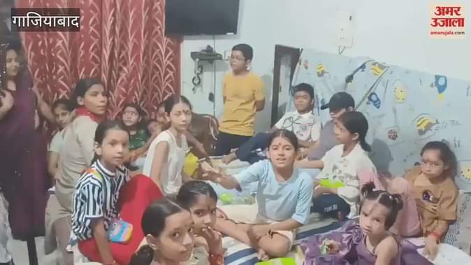 Shardiya Navratri Ashtami 2025: लोनी में कन्या पूजन के बाद जयकारा लगाती कन्याएं