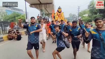 हरिद्वार से हनुमान की झांकी लेकर झूमते नाचते लेकर मोहन नगर से शिवभक्त गुजरते दिखे। कांवड यात्रा के लिए डाइवर्जन के दौरान साहिबाबाद आर ओ बी से मोहन नगर की ओर जाने वाले मार्ग पर जाम में वाहन फंस गए हैं।