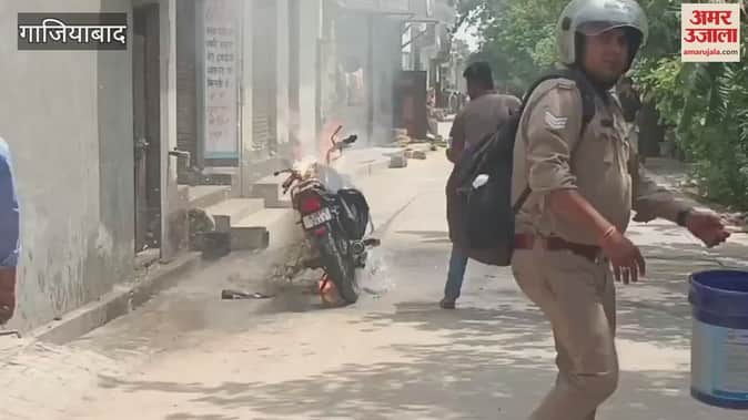 गाजियाबाद: चलती बाइक में अचानक लगी आग, सिपाही ने कूदकर बचाई अपनी जान