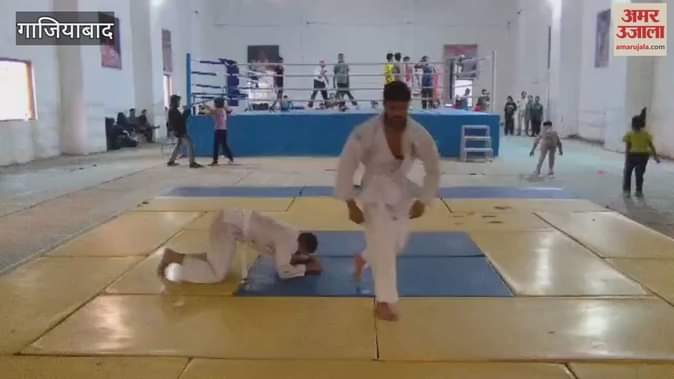 Ghaziabad: महामाया स्टेडियम में आयोजित जूडो ट्रायल में भाग लेते खिलाड़ी