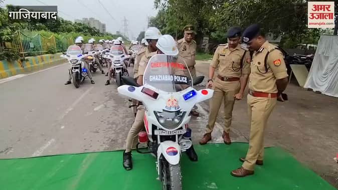 गाजियाबाद: इंदिरापुरम से पेट्रोलिंग बाइक को पुलिस आयुक्त ने दिखाई हरी झंड़ी, डीसीपी और एसीपी रहे मौजूद