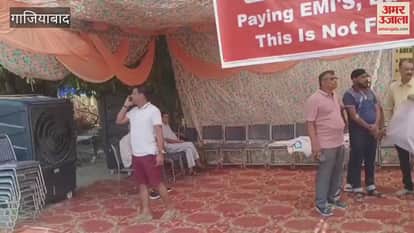 गाजियाबाद के सेक्टर 14 की मिग्सन सोसाइटी के निवासियों ने बिल्डर के खिलाफ किया प्रदर्शन