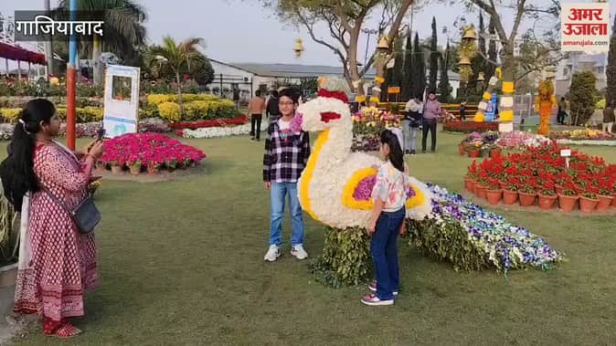 VIDEO : गाजियाबाद में फ्लॉवर शो में मोर से बनी कलाकृति के साथ सेल्फी