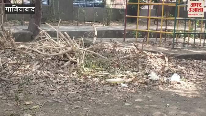 गाजियाबाद के राजेंद्र नगर स्थित जगदंबा पार्क में पेड़ गिरे हुए हैं। स्थानीय निवासियों ने कई बार निगम से पेड़ हटाने की मांग रखी। बारिश के पांचवें दिन बाद भी गिरा हुआ पेड़ नहीं हटाया गया।