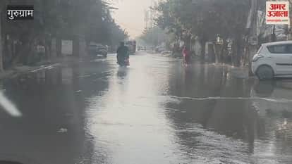 Gurugram: सेक्टर-नौ में पानी की लाइन का वॉल्व टूटने से सड़क पर भरा पानी