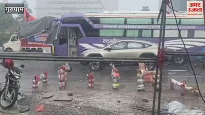 गुरुग्राम में हुई झमाझम बारिश से मौसम पूरी तरह से बदल गया है। बारिश के दौरान एक्सप्रेसवे से वाहन गुजरते दिखे तो वहीं दूसरी तरफ शिववक्तों को भी बारिश से राहत मिली।