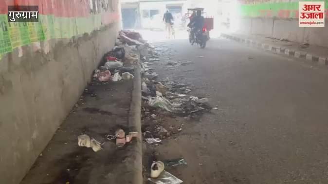 गुरुग्राम: बाबा प्रकाशपुरी मंदिर के पास बने अंडरपास में गंदगी का ढेर